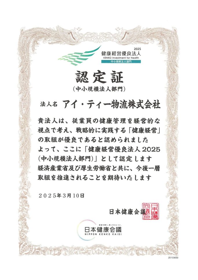 当社は健康経営優良法人(中小規模法人部門) に認定されております。